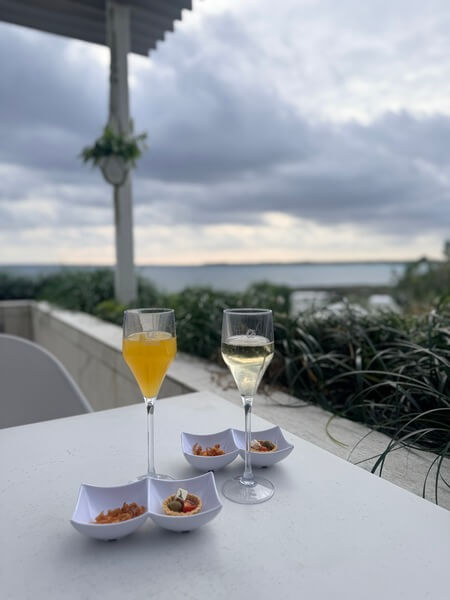 大人たちにとってのお楽しみは、なんといっても、日没時に始まる「サンセット・ディライト」だろう。メインダイニングの手前では、フリーフローのシャンパーニュ(ソフトドリンクも用意されている)とフィンガーフードが振る舞われ、ゲストはプールサイドや芝生エリアのビーチベッド、カバナで思い思いにグラスを傾ける。日本にいることを一瞬忘れてしまうような空気の中で、静かに心がほどけていく。