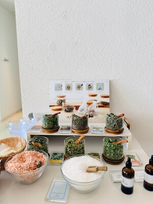 アクティビティも抜かりない。毎日15時からは、ロビーで「バスソルト作り」体験が提供されている。月桃やヨモギといった沖縄ならではのハーブに、ソルトとアロマオイルを加えて仕上げる工程は、大人にも子どもにも人気が高いという。