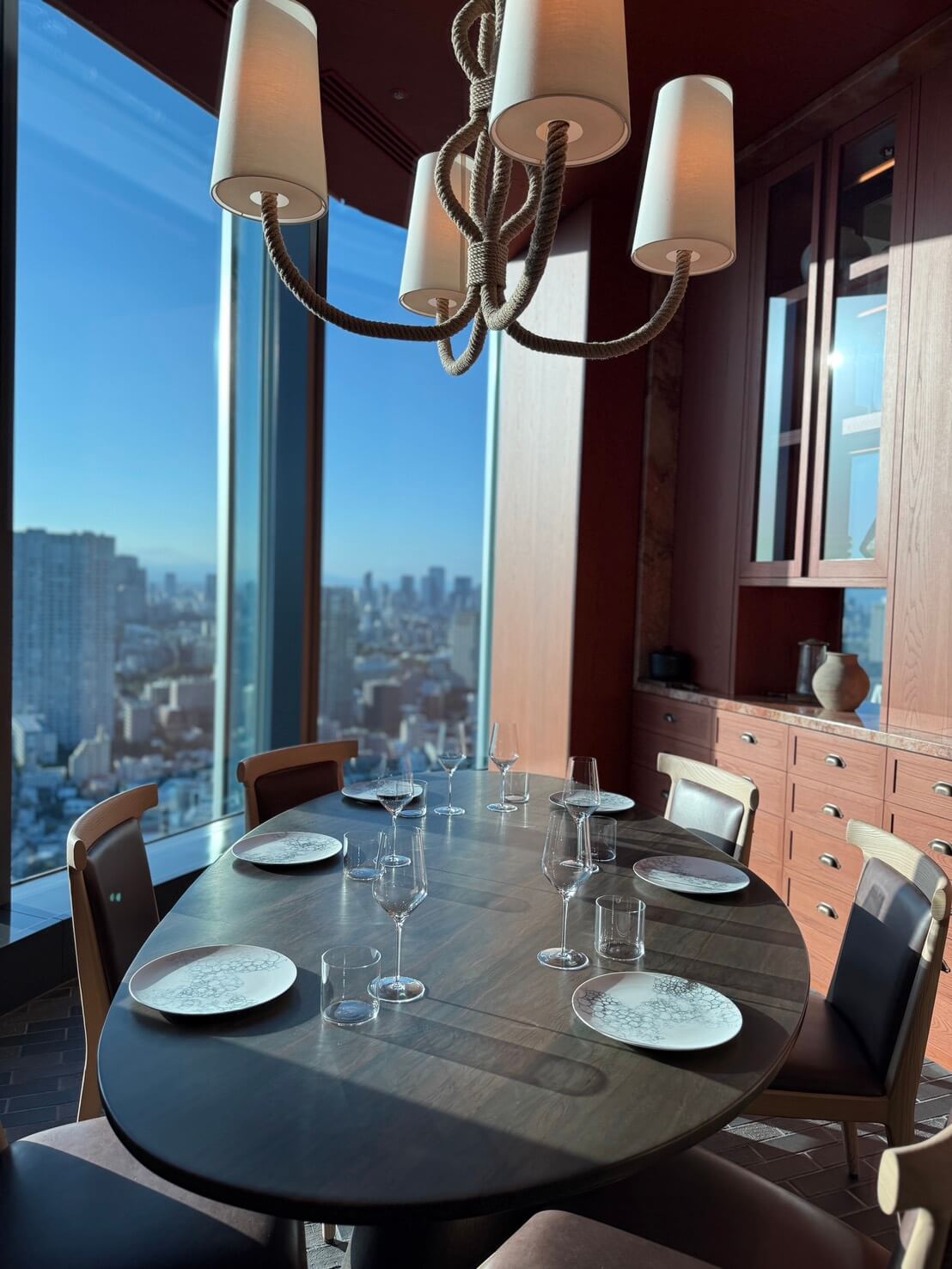 その一角には「Saki 咲」という8席のみのカウンター割烹があり、2名のミシュランシェフが監修するライブ感あふれるおまかせ料理がいただけるとのこと。カウンターの左端はレインボーブリッジを眺めることができる特等席です。いつかここでのディナーを体験してみたい、そう思わせる秘密の空間でした。