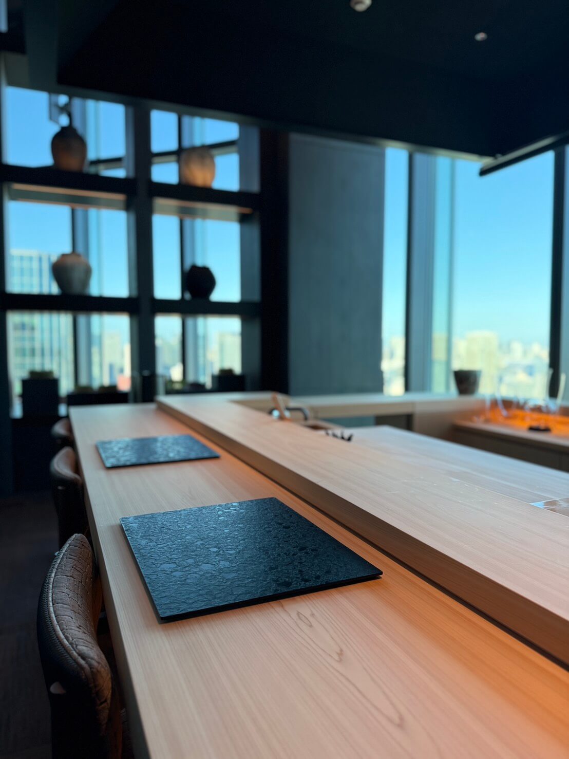 その一角には「Saki 咲」という8席のみのカウンター割烹があり、2名のミシュランシェフが監修するライブ感あふれるおまかせ料理がいただけるとのこと。カウンターの左端はレインボーブリッジを眺めることができる特等席です。いつかここでのディナーを体験してみたい、そう思わせる秘密の空間でした。