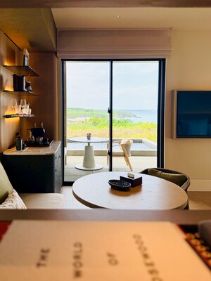 Every guest room is a villa, and each offers both ocean views and a private pool. The interiors are modern yet deeply calming—spaces designed not to impress, but to invite ease. Created by the Dutch design firm Studio Piet Boon, the architecture blends naturally with its surroundings, while subtle details reference local culture: artworks inspired by Miyako jofu textiles and Tsuboya ceramics are integrated seamlessly into the space.