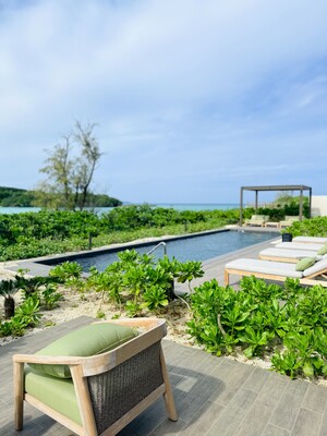 Located on a peninsula overlooking O-ura Bay in northern Miyako Island, the resort spans more than 9,500 square meters. Scattered across the landscape are 55 private villas. Alongside facilities such as an infinity pool, spa and thermal baths, fitness center, yoga studio, and kids’ club, three dining venues are already in operation: the main restaurant NAGI, the seafood restaurant MAAS, and the poolside bar YUKUU.